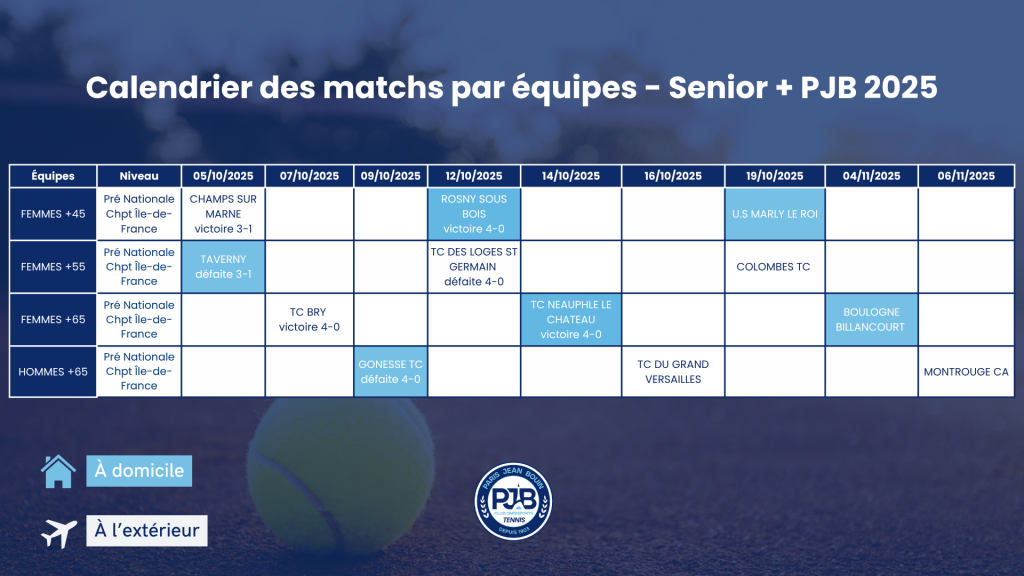 PJB TENNIS // Calendrier des rencontres par équipes sénior plus 2025