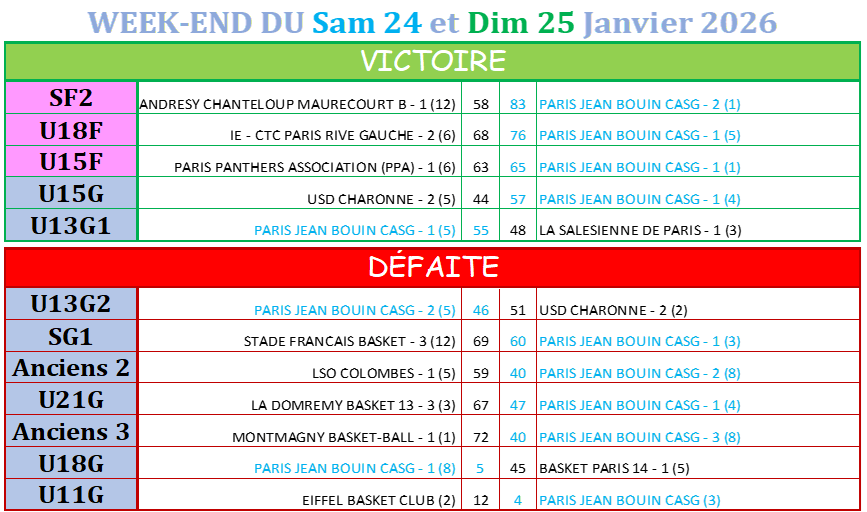 PJB BASKET // Résultats du Week-end 24/25 janvier 2026