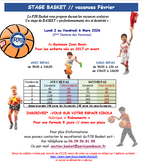 PJB BASKET // Stage de Basket // Vacances de Février