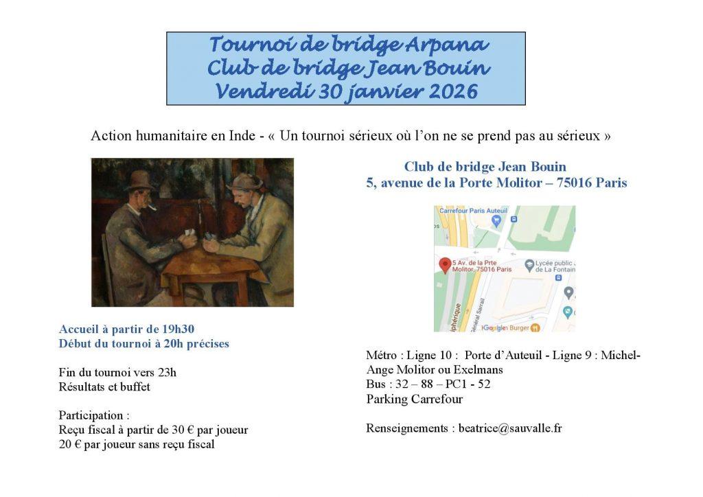 PJB BRIDGE // Tournoi caritatif ARPANA – vendredi 30 janvier à 19h30