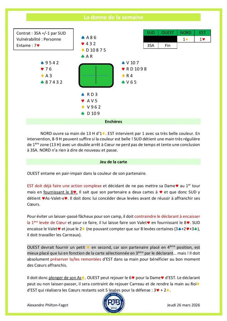 Donne de la semaine du 27 mars 2025
