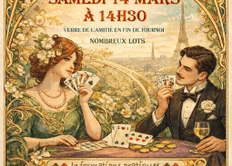 Tournoi festif toujours aussi convivial, suivi du verre de l’amitié, avec la participation de notre nouveau président du Comité de Paris, Alain Coriat, accompagné de son épouse, Martine. Merci aux personnes qui nous ont gâtés en apportant d’excellents gâteaux. Les vainqueurs du tournoi festif : E/O : Catherine Boulanger – Marie-Caroline Brouillot N/S : Carole Seiller…