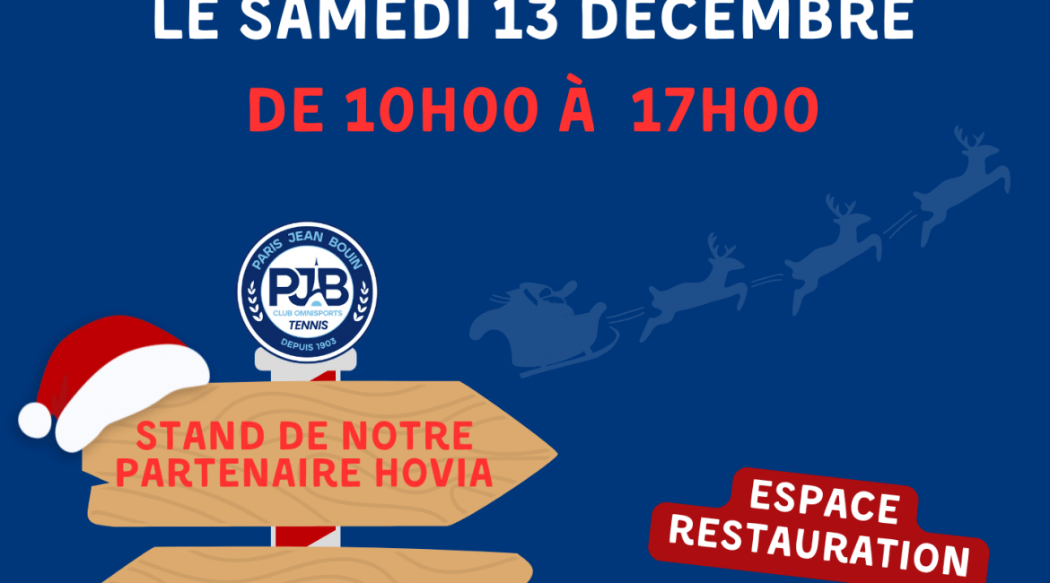 Nos partenaires Hovia et TennisPro seront présents pour vous proposer de belles offres de Noël 🎁, ainsi que la griffe Paris Jean Bouin 👕 pour vos idées cadeaux.